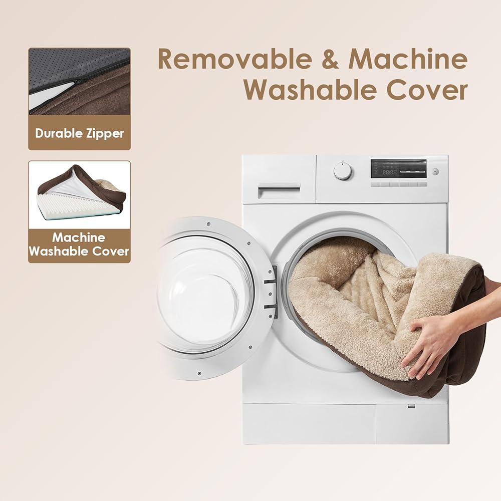CARE GUIDELINES: This pet bed retreat boasts a removable, machine-washable cover with a convenient zipper. Simply extract the foam core and launder the cover. Kindly remember, the foam insert is not designed for washing. Postunpacking, allow 24-48 hours for the bed to fully inflate.