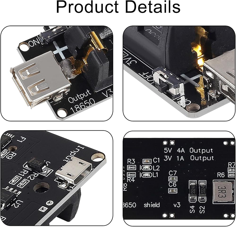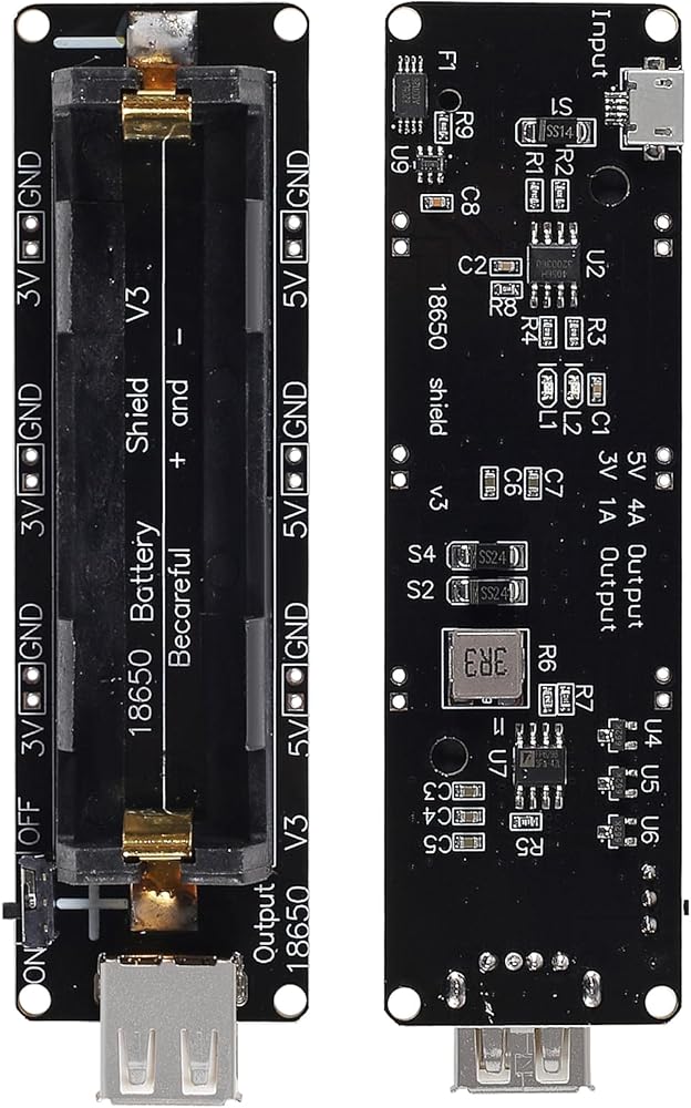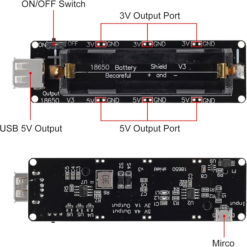 18650 Battery Shield Micro USB 5V/3A 3V/1A Power Bank Battery Charging Module for Raspberry Pi and Arduino ESP32