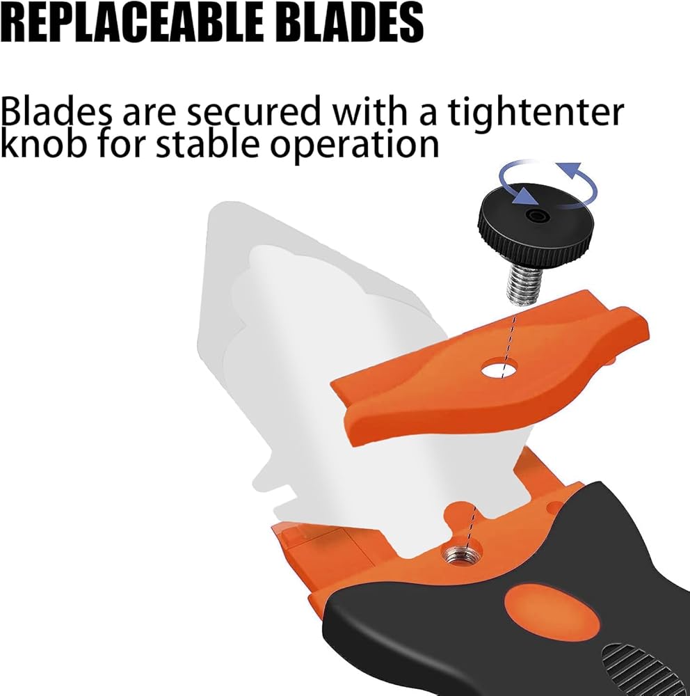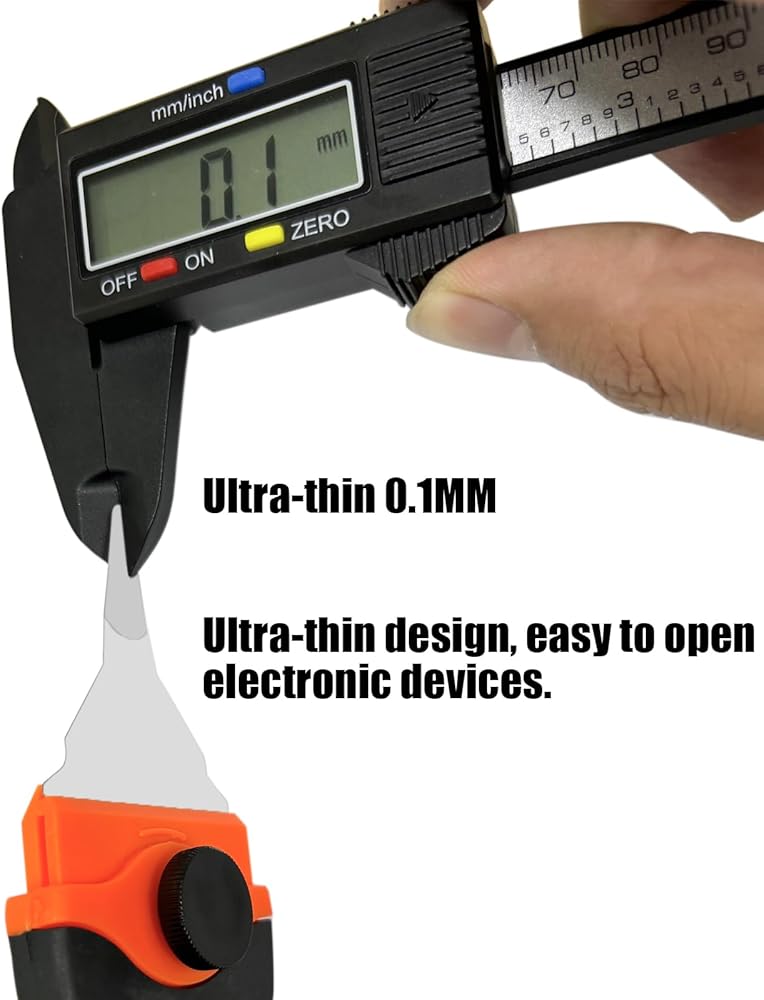Anti-skid & ergonomic handle: Spudger tool is designed with an ergonomic curved rubber handle, which is anti-skid and protects you from accidental cuts. It has a safety knob, which provides a good stability structure, making it easy for Electronics Opening Tool to change blades. Just unscrew the knob on the blade scraper, put on a new blade, and then tighten the knob. Be careful when replacing the blade