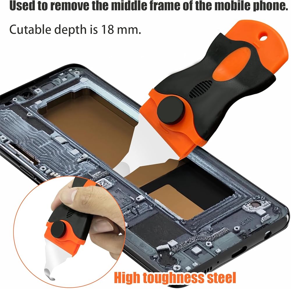 Widely used: from technical equipment disassembly to family projects. Scraper Screen removal tool is not only used for dismantling and repairing scientific equipment, but also very suitable for removing paint, signs, decals, vinyl, glue and stickers in family projects, and can be used for metals, floors, cars, walls, tiles and glass