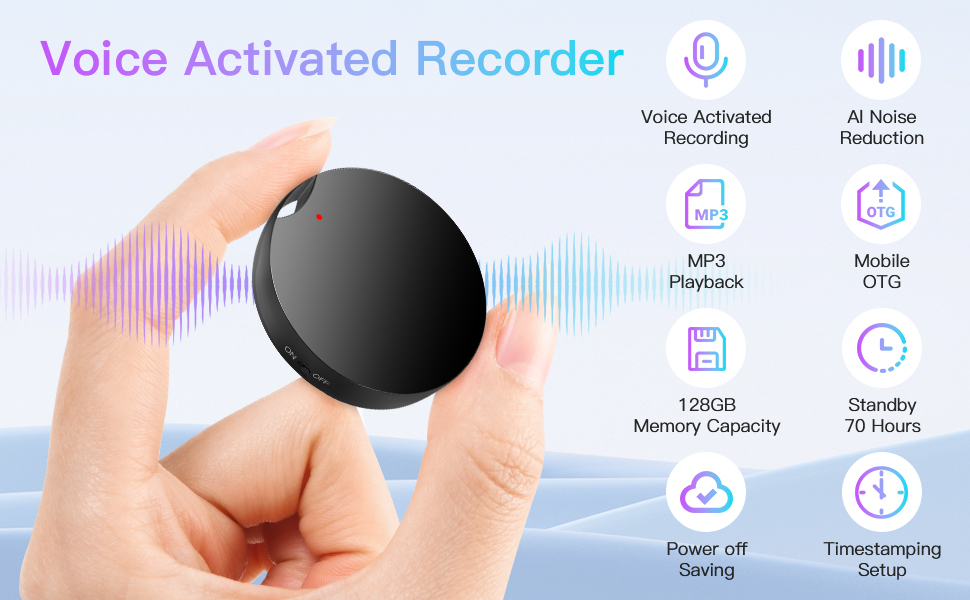 【Voice-Activated 】 Maximize efficiency with voice-activated recording! This audio recorder starts recording automatically when sound is detected, conserving both battery life and storage. Perfect for interviews, lectures, and meetings, this feature lets you set it and forget it, capturing only what's essential.
