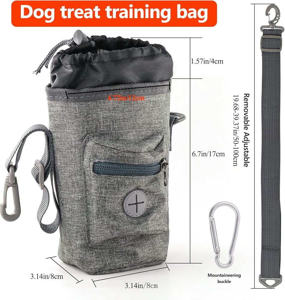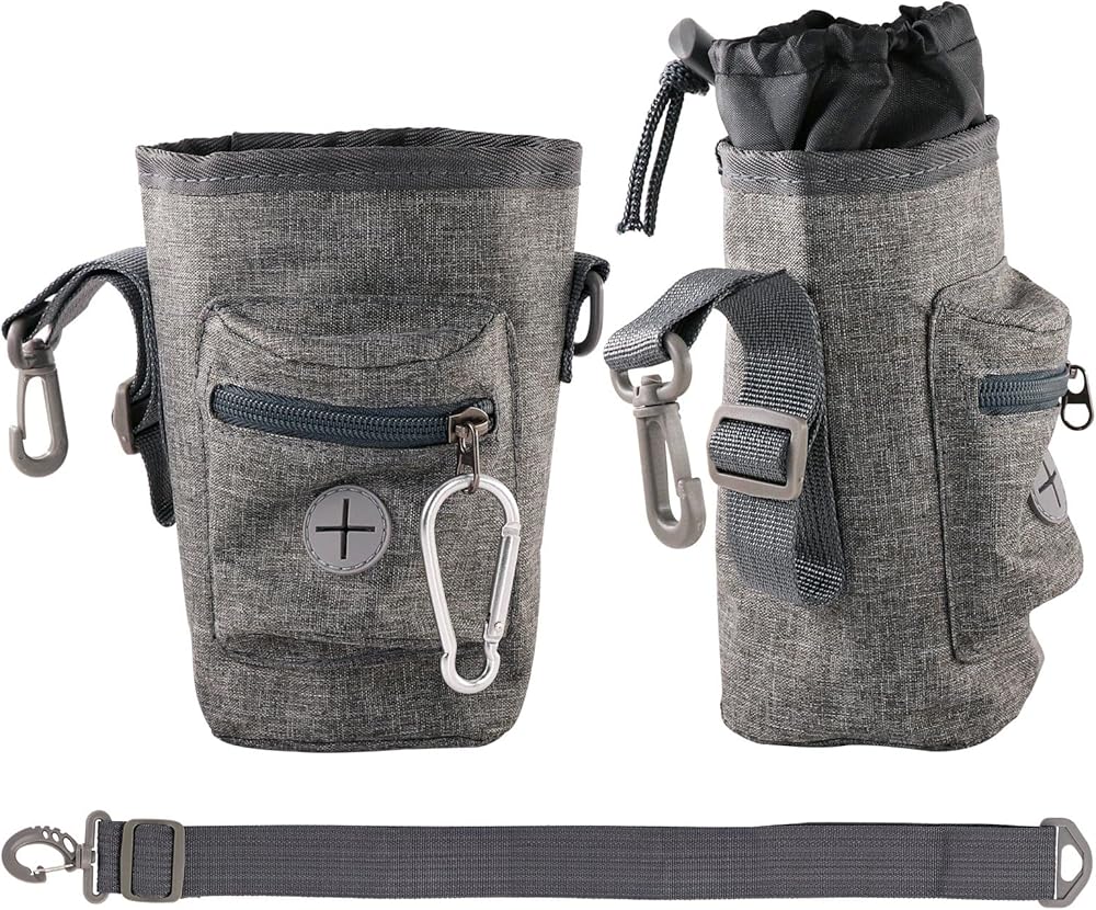 Free Your Hand: Dog walk bag comes with 1 adjustable strap for waist belt or shoulder strap. Wear dog training pouch around the waist and Hang the pet treat bag on your shoulder or cross body