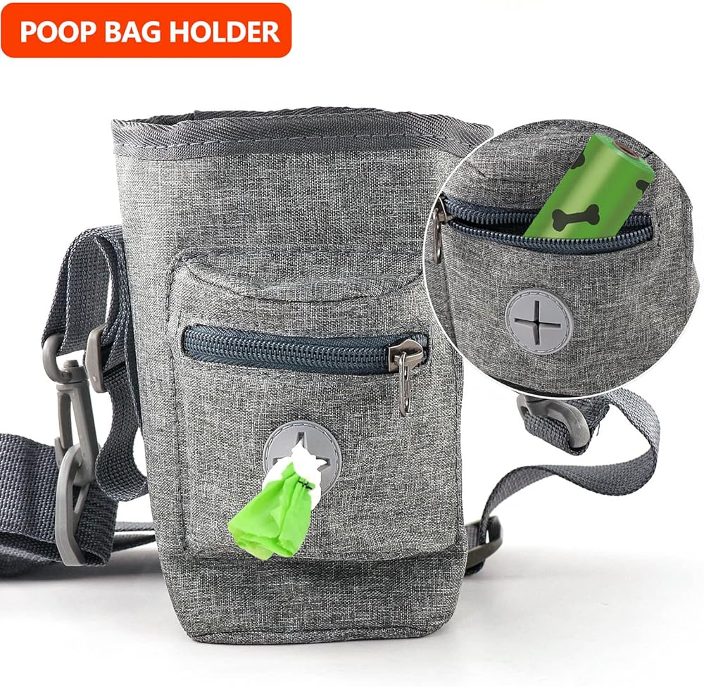 Havenfly Dog Treat Pouch for Pet Training Built in Poop Bag, with Waist Belt Shoulder Strap, Easily 4 Ways to Wear for Walking, Traveling, 1.5L for Pet Toys, Kibble, Treats - Grey