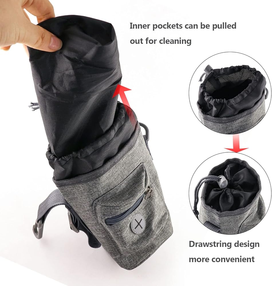 1.5L Capacity for Puppy Training & Walking: The dog treat pouch's drawstring compartment can securely holds in generous amounts of dog's favorite treat and toys