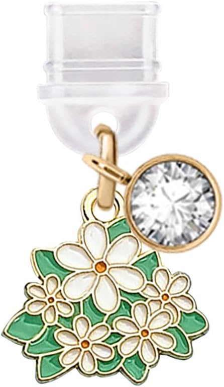 ELISE & FONDA TP335 Type-C USB Charging Port Anti Dust Plug Little Jasmine Flower Cell Phone Charm for Samsung/OnePlus/Xiaomi/oppo Android Phone iPhone 15/16 (Green)
