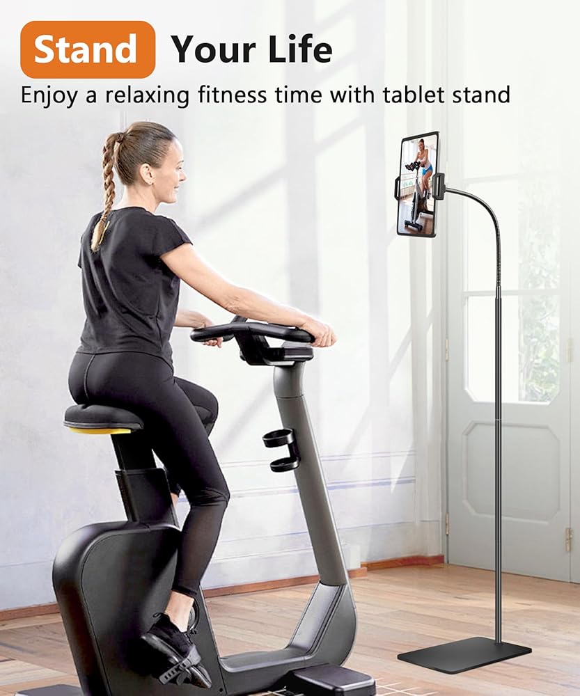 BEST VISUAL EXPERIENCE: When you are lying sitting stand on a sofa or in a bed, our flexible tablet holder stand will free your hands and providing the perfect view for watching movies,reading e-books, vlogging, playing games, or reading music scores when practicing guitar or piano, also suit for various scenarios such as exercise bike, kitchen, office desk.