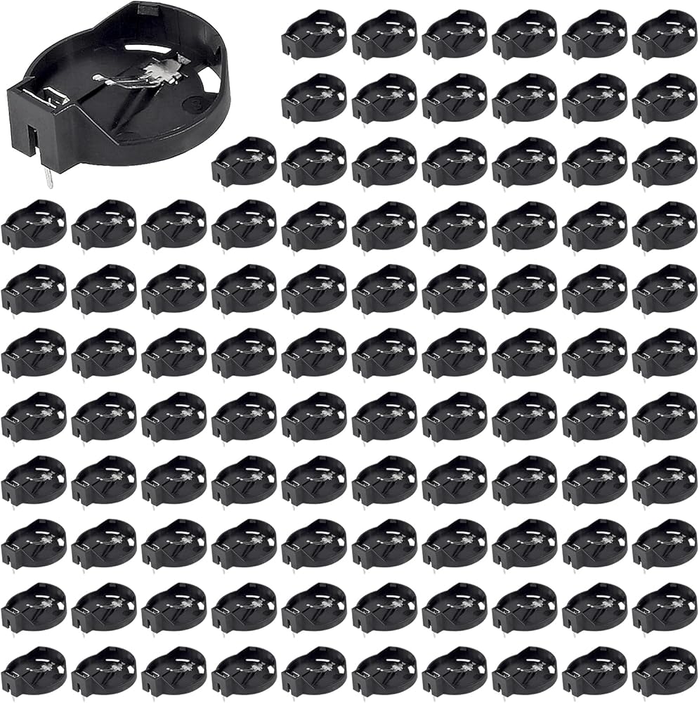 100pcs CR2032 2025 2015 Battery Holder, Coin Cell Button Socket Holder Case, CR2032 2025 2015 Coin Cell Button Battery Holder with 2 Pin Solder Mounting Lead (B)