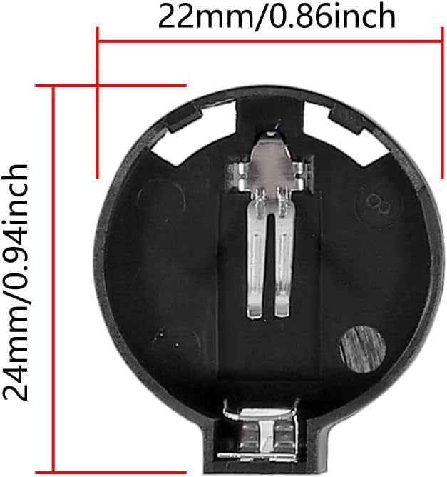 - Dimensions of CR2032 Battery Holder:(Diameter*Thickness)/0.91"x 0.24"/2.3cm x 0.6cm