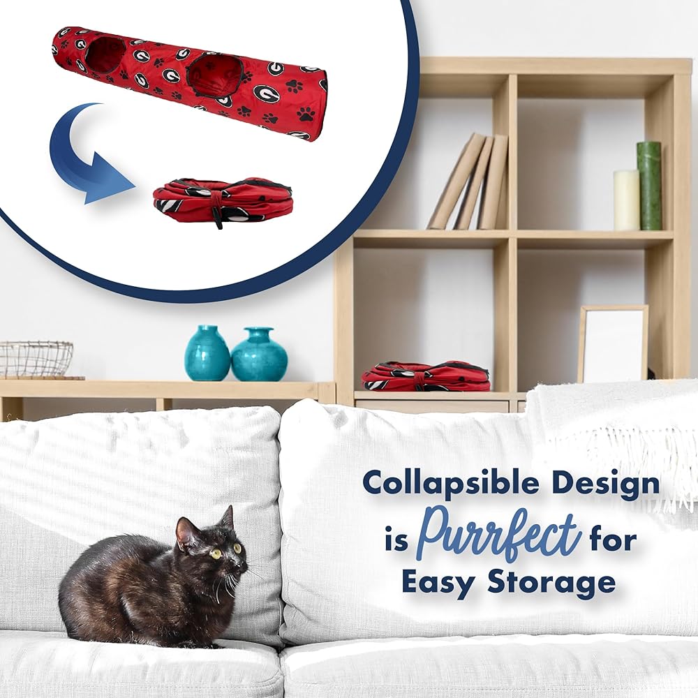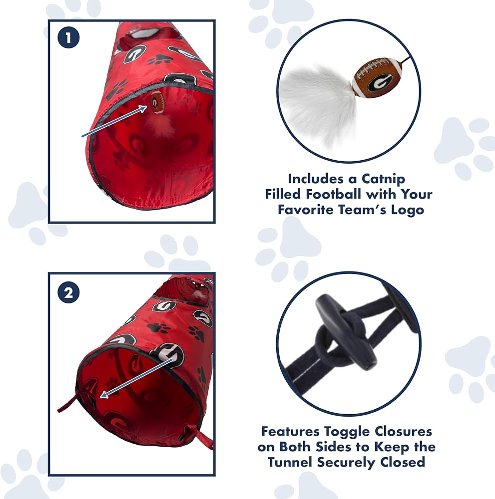 The Pets First NCAA Cat Tunnel Toy is a perfect blend of fun and team spirit, designed to keep your cat entertained while showcasing your favorite football team.