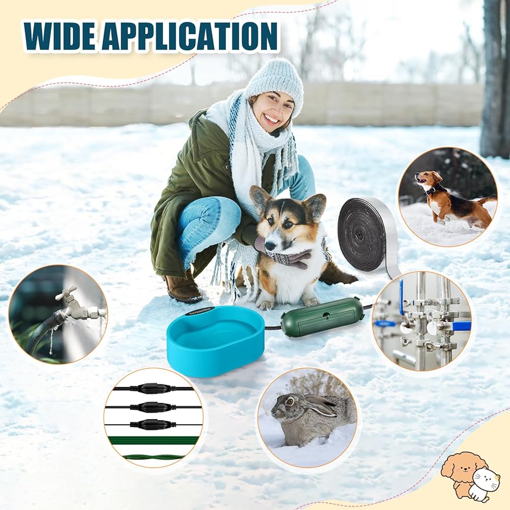 • Pet Essential for Winter: the set of heated water bowl, pipe insulation tape and outdoor extension cord safety cover acts as an essential tool to keep your pets hydrated and safe during the harsh winter months