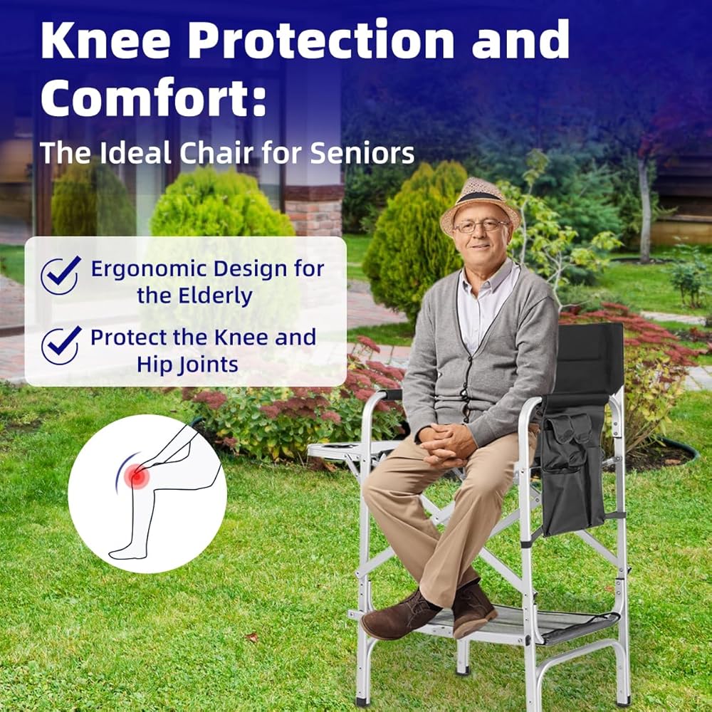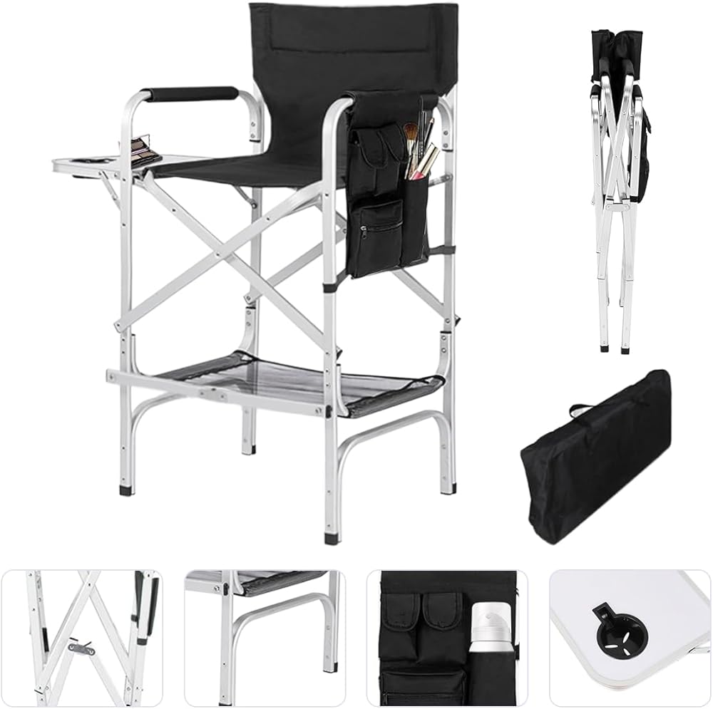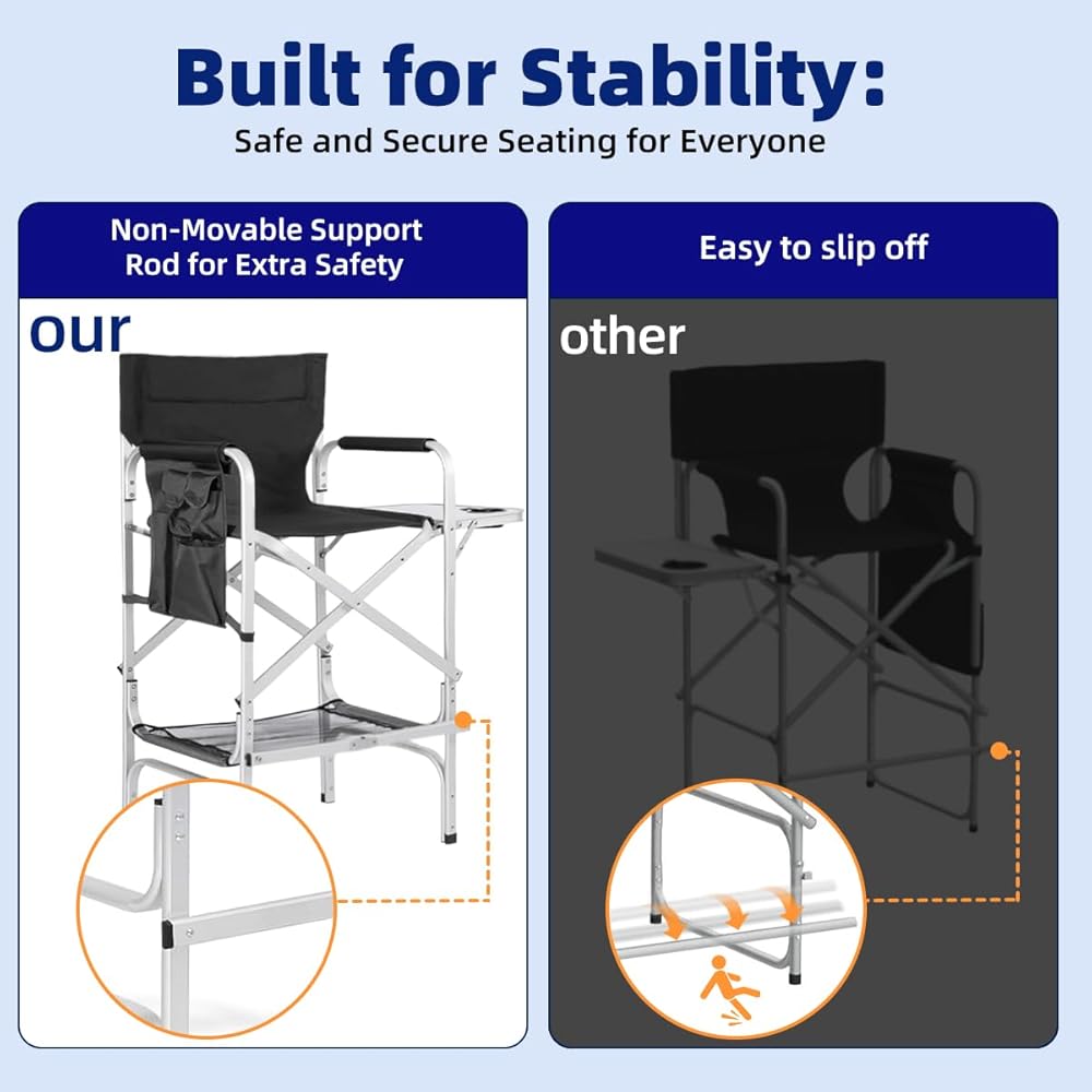 IDEAL FOR VARIOUS SCENARIOS: With 30-inch high chair legs, this tall chair offers an elevated view, perfect for both indoor and outdoor activities. It's a versatile choice for makeup sessions, sports events, exhibitions, and more, especially for those with knee problems. This makeup artist chair is an excellent makeup chair for clients
