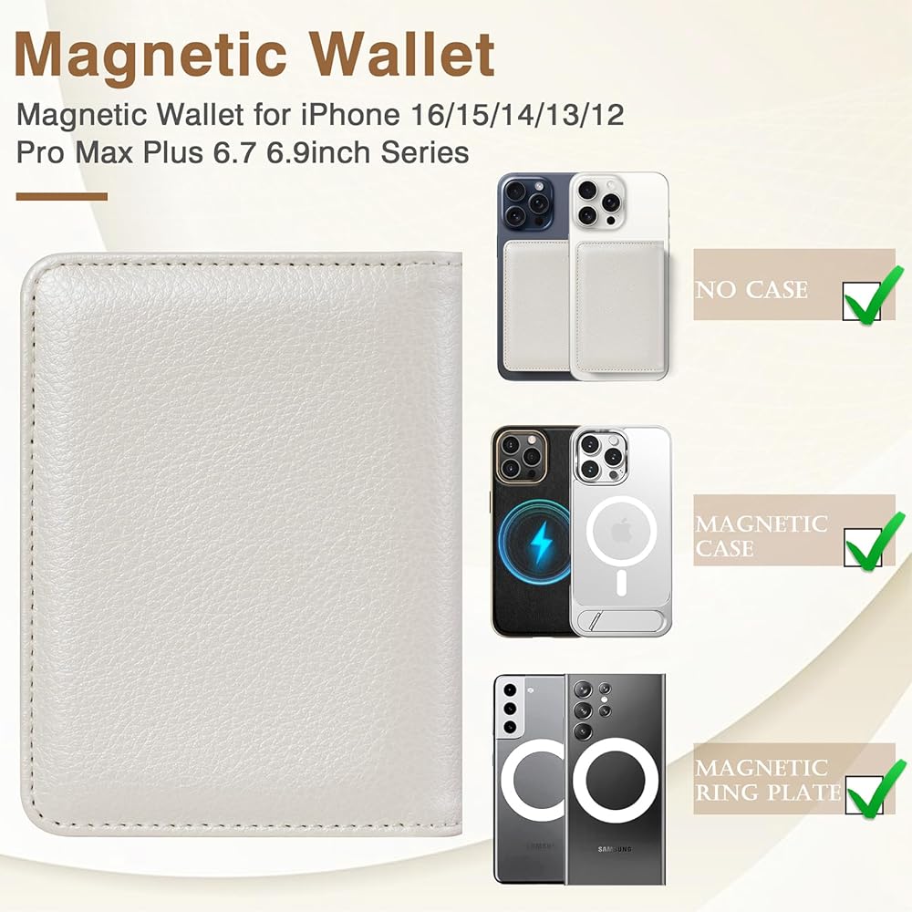 Fit For More Smartphones : Vegan leather mag safe wallet compatible with iPhone 16Plus/16 Pro Max/15 Plus/15 Pro Max/14 Plus/14 Pro Max/13 Pro Max/12 Pro Max 6.9 6.7inches, not for iPhone 12/13 Mini, as well compatible with official mag safe cases and other smartphones that with magnetic devices