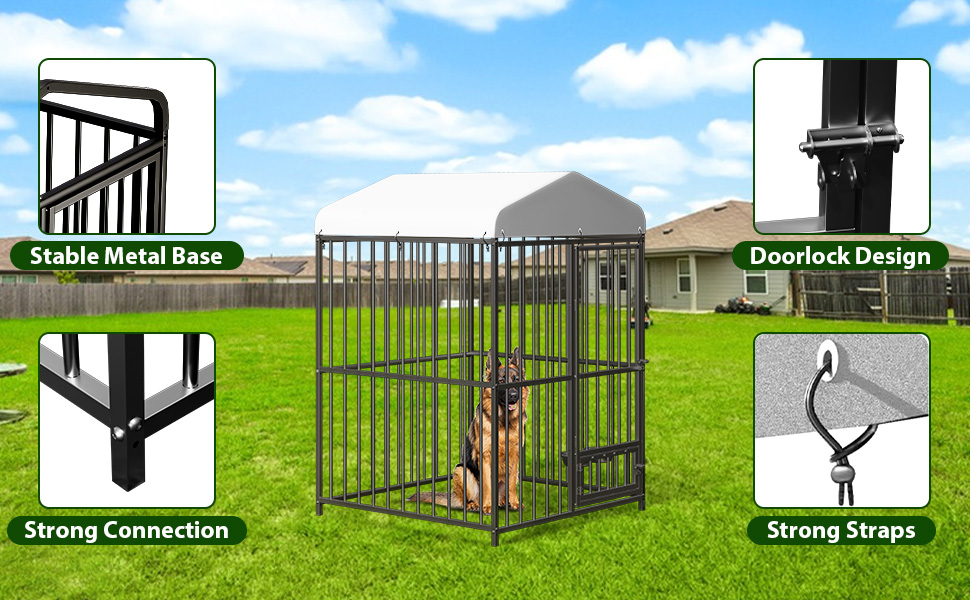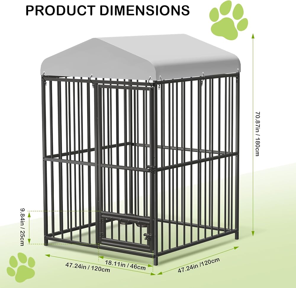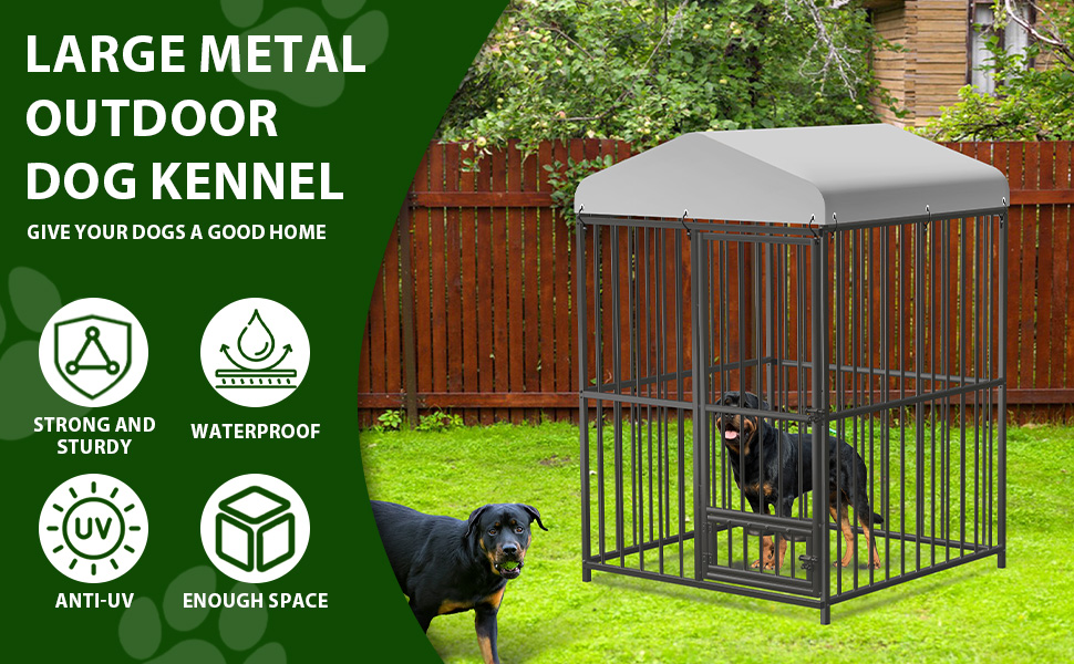 [WATERPROOF CANOPY FOR PROTECTION] - Enhance your dog's outdoor experience with a water-proof canopy on this dog kennel, shielding your pet from rain and harmful UV rays while allowing them to enjoy the fresh air and outdoor surroundings.