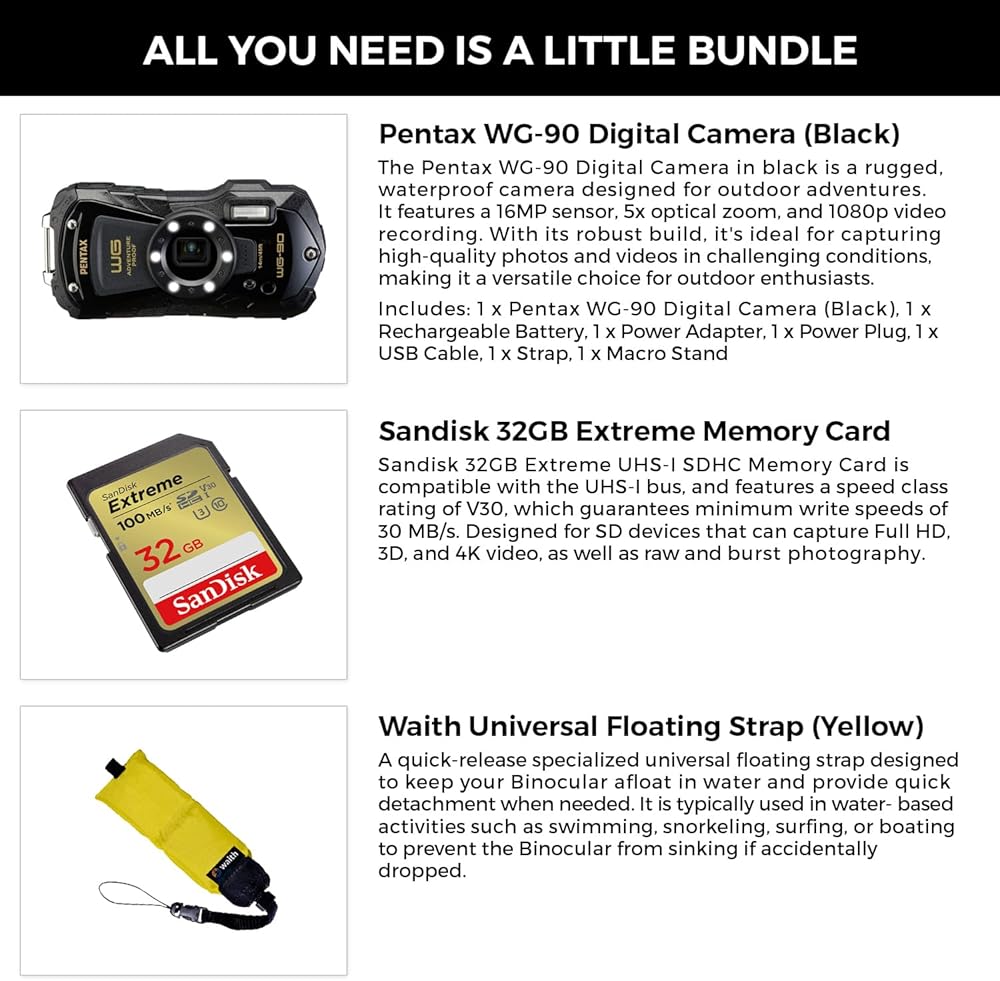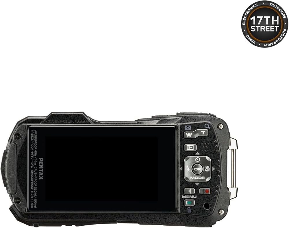 Discover the Pentax WG-90 Digital Camera (Black), a robust 16MP camera with 5x zoom, underwater capabilities, and durability against freezing, shocks, and crushing. Ideal for adventurous and challenging photography.