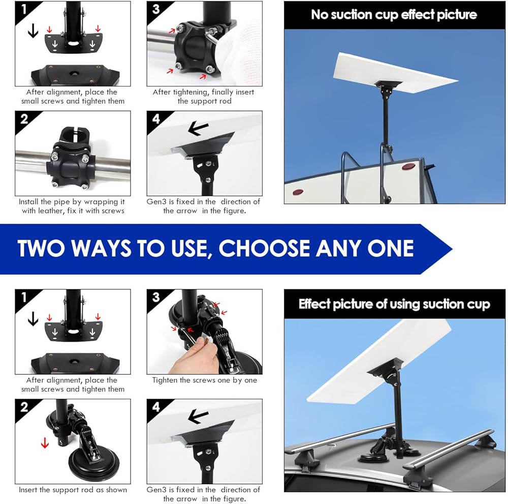 Starlink Gen 3 Suction Cup Mount, Starlink Car Mount, Starlink Mounting Kit Gen 3, Aluminum Alloy Material Quick Disassembly&Assembly, Starlink Pole Mount for Camper/RV/Car Windshield/Outdoor Window