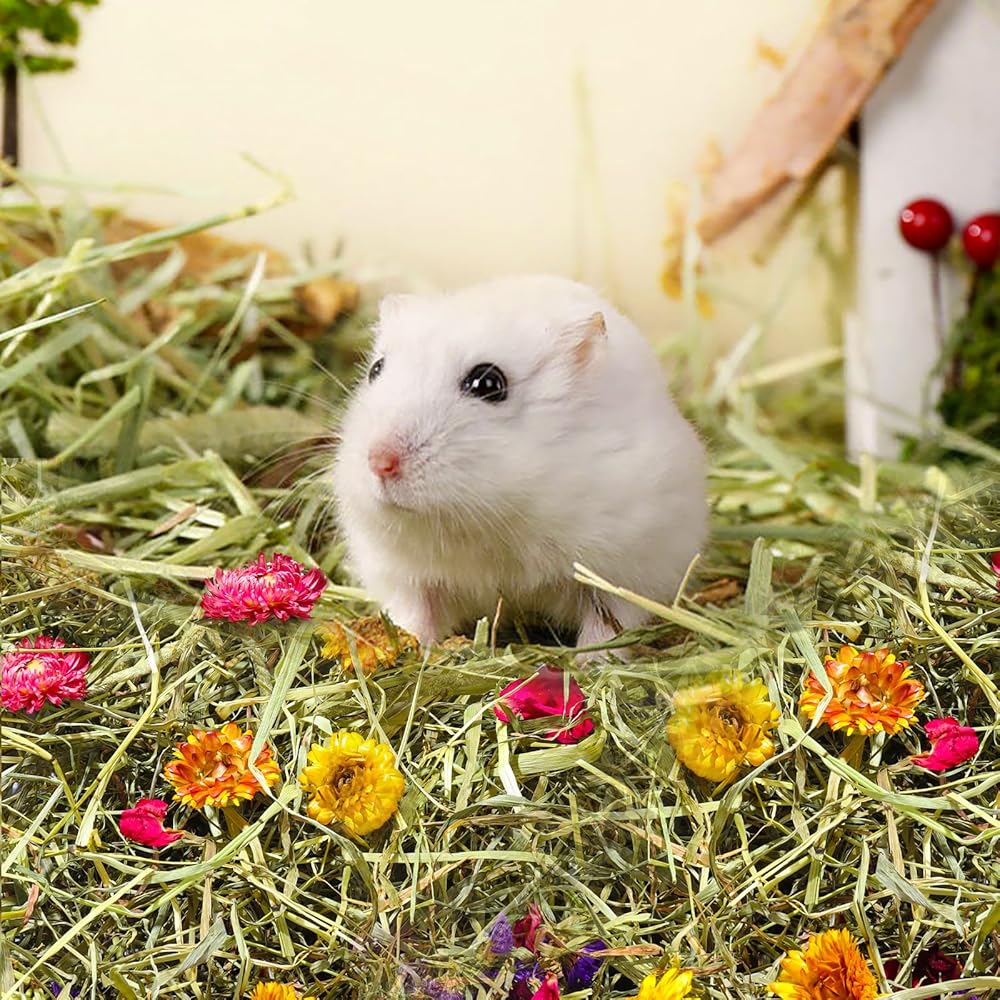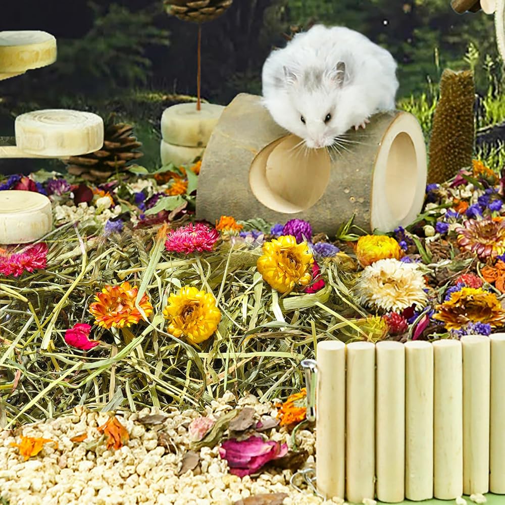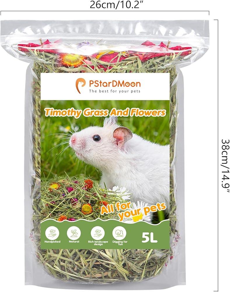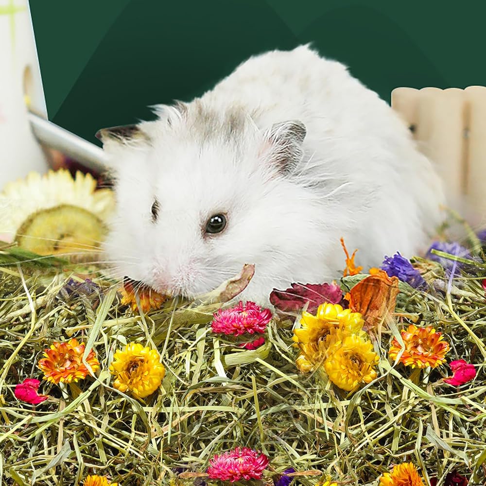 Pure Natural Hamsters Bedding Nesting, Small Animal Habitat Decoration, Hamster Cages Accessories, Pet Litter for Dwarf Syrian Hamsters, Gerbils, mices, Degus (Timothy and Flower, 5L)