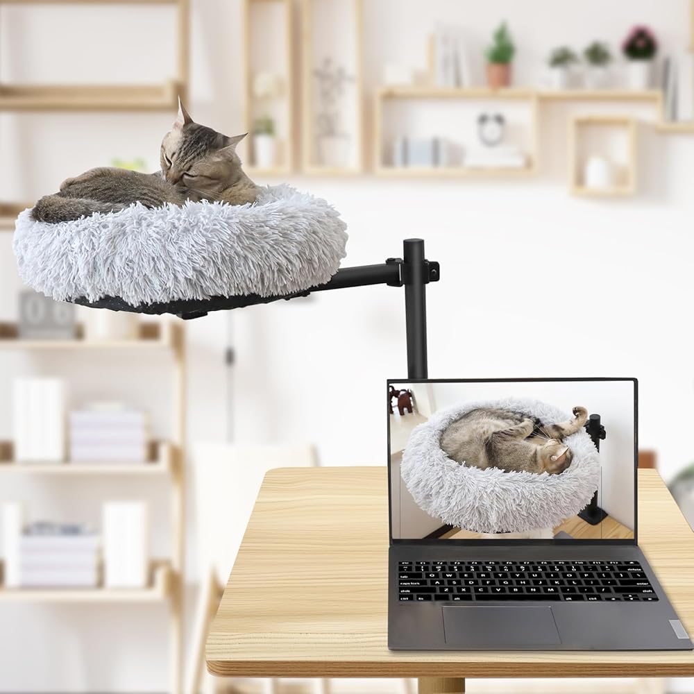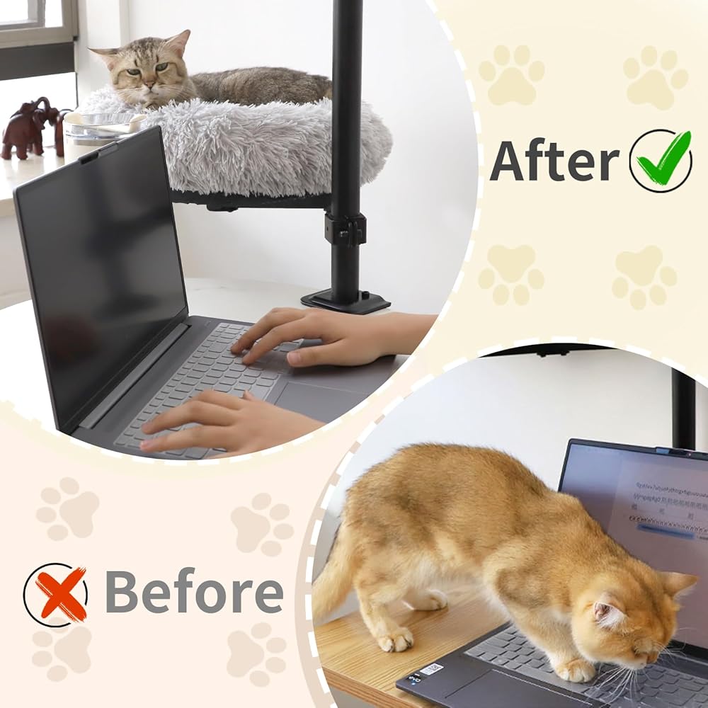 Versatile Compatibility: For universal fit Design, this Desk Cat Bed accommodate Max 3.15in thicknesses sizes of multiple desks, can set it up on home offcie table, gaming table, computer desk