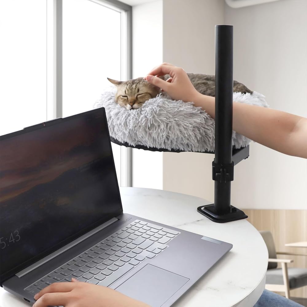 Convenience for work from home: With this cat bed for desk, your working efficiency and concentration will not be lowered by Clingy cat. The Cat bed metal mount also have desktop cable organizer clip