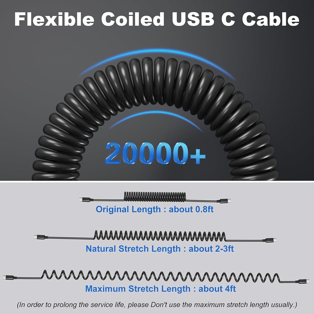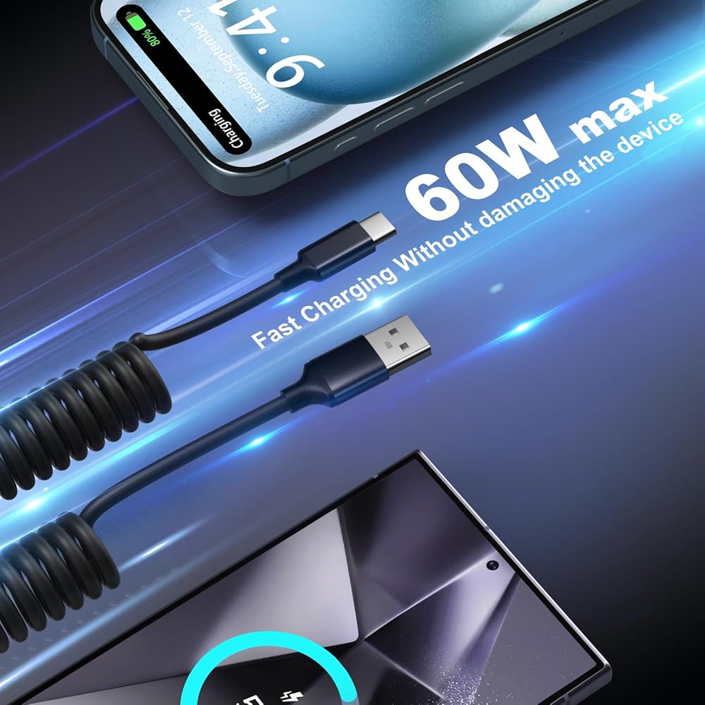 【USB C Broad Compatibility】: Package content 2 pack USB C coiled car charger cables is perfect compatible for iPhone 16 Pro Max / 16 Pro / 16 Plus / 16 / 15 / 15 Plus / 15 Pro / 15 Pro Max, iPad 10th, iPad Pro / Mini 6th / Air 5th 4th. Samsung Galaxy S24 Ultra / S24+ / S24 / S23 / S22 / S21 / S20, Galaxy Note20 Ultra / Note20 / Note10 / Note10+ / Note9, Galaxy A55 / A54 / A51 / A71 / A70s, Galaxy Z Fold / Flip series. Google Pixel 9 / 8 / 7 / 7A / 6 / 5 / 4A / 4XL / 3, LG, MOTO, Switch, Phones & Tablets, Earbuds, Smartwatches and more.
