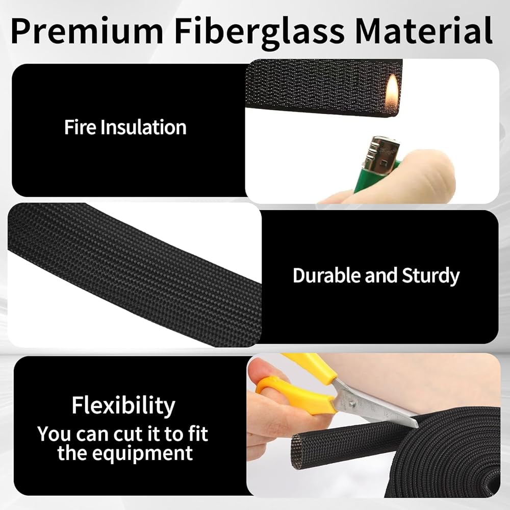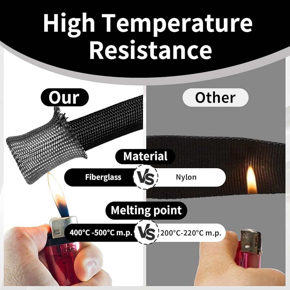 High-Quality Material-:The rope sleeve is mainly made of temperature fiberglass, so it has the characteristics of wear resistance, flame retardant, strong, not easy to break, and can be applied for a long time.It can withstand heat up to 1000°C (1832°F) degrees intermittent. Enjoy long-lasting protection without worrying about damage.