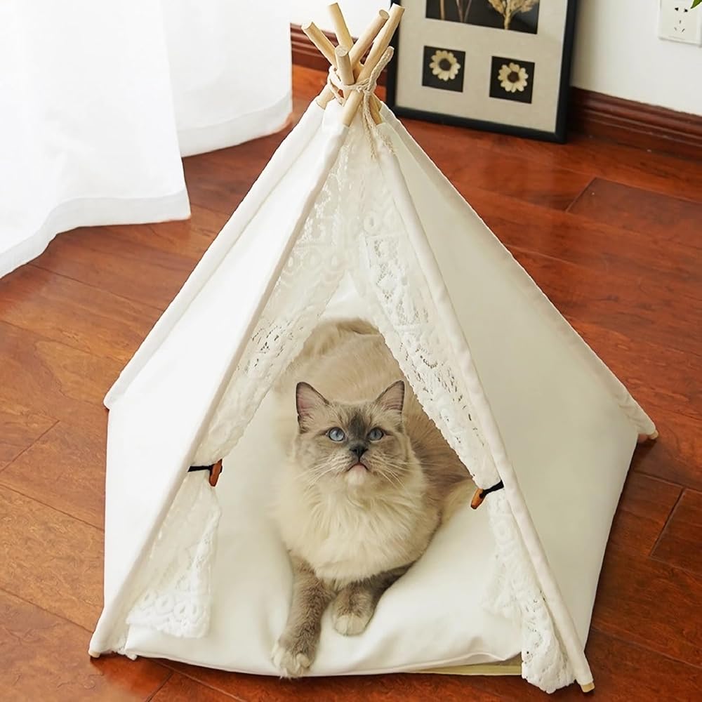 【Comfortable】This dog teepee tent are fitted with a high quality dog bed for maximum comfort. The premium cushion provides quality padding to ensure a comfortable bed that will keep your pet cozy for years to come.