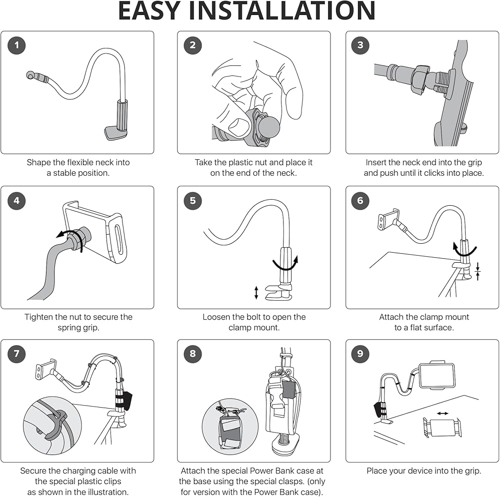 ✌ Ideal Set - Tablet Stand for Bed & Desk Includes 4 Clips to Keep Charging Cable in Place. Note: Stand is Ideal for Reading and Watching but may Wobble when Tapping. Bend the "Neck" into an S Shape to Help Reducing Wobbles!