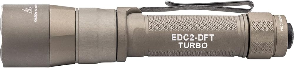 Turbocharge Your Low-Light Vision. SureFire's Everyday Carry Series punches deep into darkness with the EDC2-DFT, a Dual Fuel, high-candela handheld flashlight that delivers impressive long-distance illumination in a remarkably compact form factor. With a blinding, peak beam intensity of 100,000 candela using the included SF18650B rechargeable lithium-ion battery, or 90,000 candela with two 123A batteries, the EDC2-DFT delivers the farthest-reaching beam of any compact SureFire EDC handheld light. You'll see farther into the dark to positively identify a potential threat, and the EDC2-DFT also provides ample spill light for situational awareness. In addition, the EDC2-DFT offers more runtime by virtue of its more energy-dense power sources. Constructed of lightweight aerospace aluminum, Mil-Spec hard-anodized, and O-ring sealed to keep out the elements, the body and tailcap are also knurled for a secure grip. A sturdy, two-way clip offers the added flexibility of bezel-up or bevel-down carry. The EDC2-DFT delivers SureFire quality, performance, and dependability in an everyday carry flashlight that provides peace of mind by helping you see farther into the unknown.