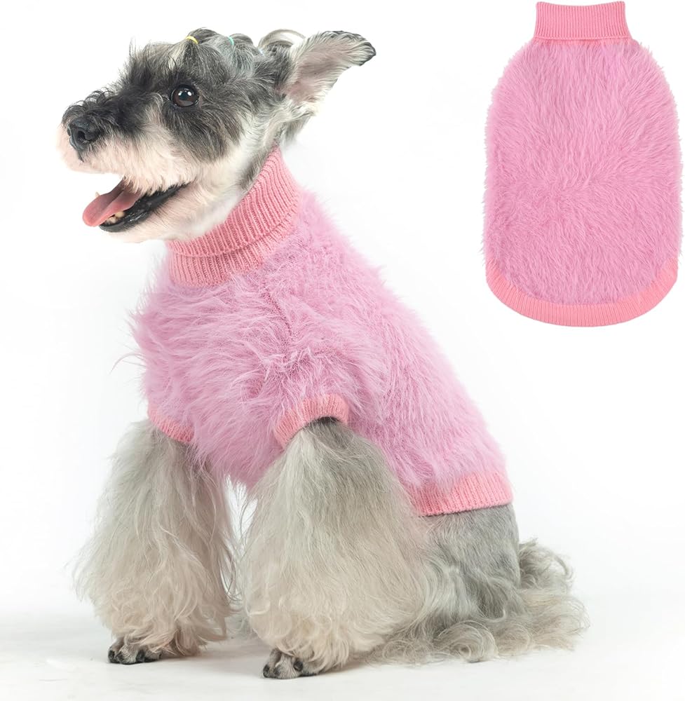 SCENEREAL Faux Fur Dog Sweaters for Small Medium Dogs, Super Soft Fall Fleece Dog Clothes Sweatshirt for Cold Weather, Turtleneck Plush Knitted Warm Winter Cold Weather Coat for Girls Boys