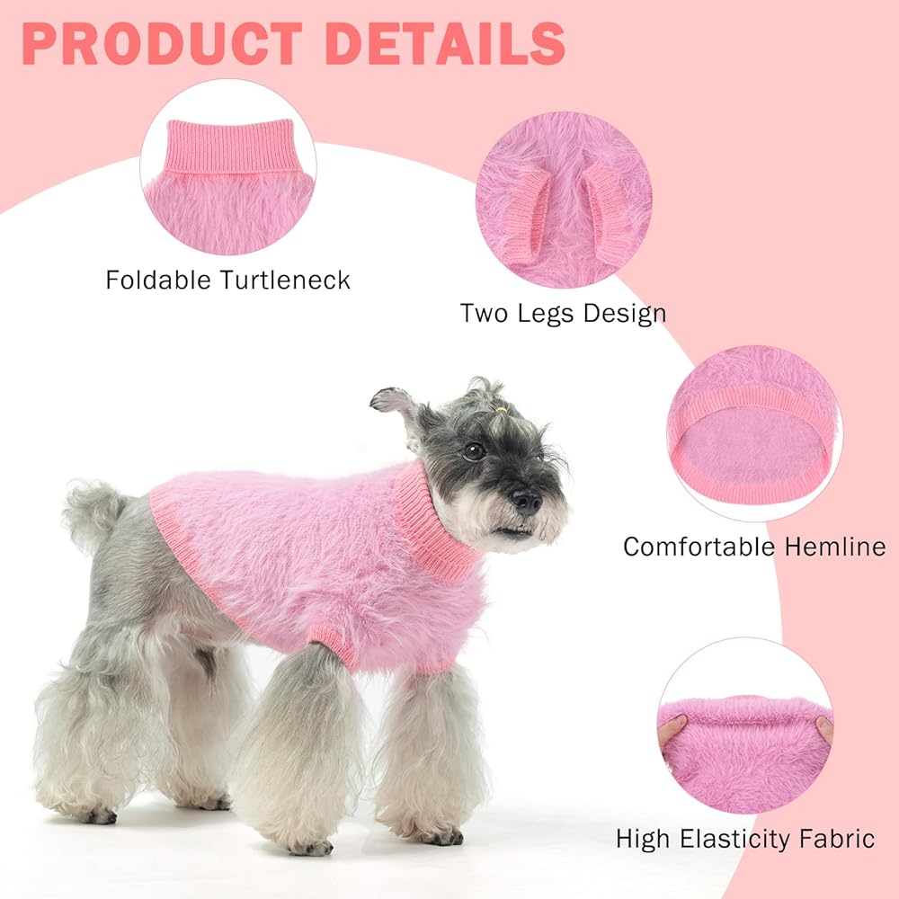 SIZE AND COLOR: S plush small dog sweater's back length is 12", chest girth is 16", and neck girth is 10". Remember to measure your dog's size before ordering to choose the right dog sweaters for your baby. The pet clothes have four colors, which are pink, red, green, and purple, vivid and lively, and your dog will love them!