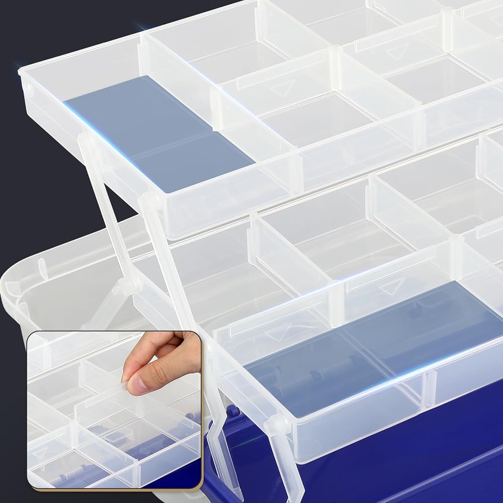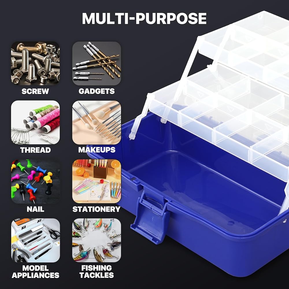 Maximize your storage with our Tackle Box Organizer, a durable plastic organizer box designed for versatile use. Featuring three layers with two clear trays, this box is perfect for efficiently organizing your fishing gear, crafts, or tools. Each compartment is tailored to keep your items neatly arranged and quickly accessible, making it an essential tool for any activity, from home organization to outdoor adventures. Its sturdy construction and clear design ensure longevity and ease of use, making it an ideal choice for organized storage solutions.