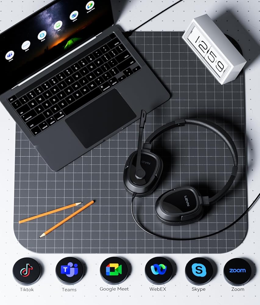 The LEVN usb headset with microphone for pc delivers clear sound and communication with advanced noise-canceling technology. Perfect for online courses, Zoom meetings, Skype calls, gaming, and music, this lightweight headset ensures comfort all day with soft ear cushions and a sweat-resistant design. It's easy to use with plug-and-play connectivity, compatible with Windows, Mac OS, laptops, and PCs, and works with popular software like Skype and Zoom. The built-in mute control and durable construction make it a versatile choice for work, study, and leisure