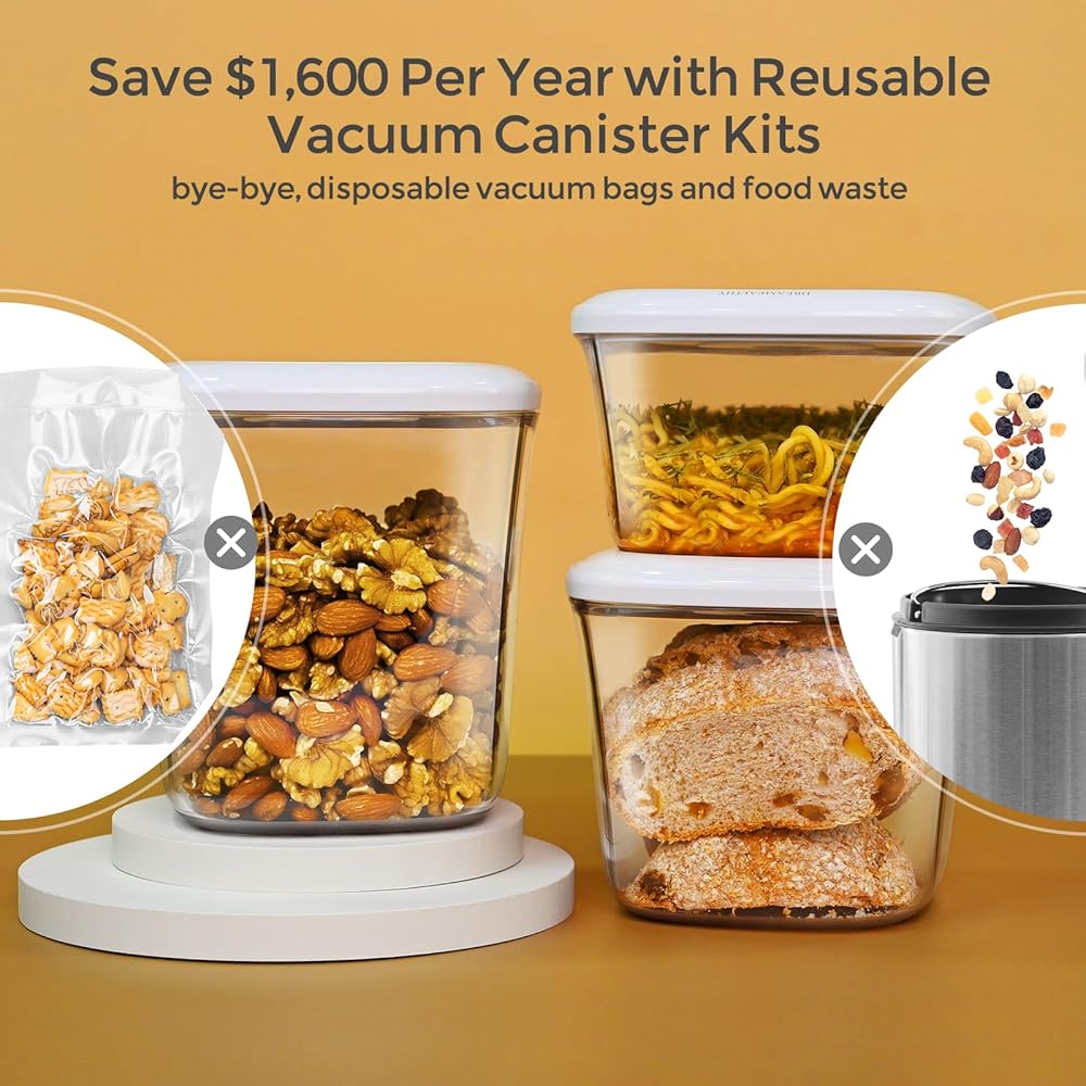 Save Money and Reduce Plastic Waste: Save over $1,600 annually by minimizing food and vacuum bag waste with our innovative reusable vacuum seal canisters for food storage.
