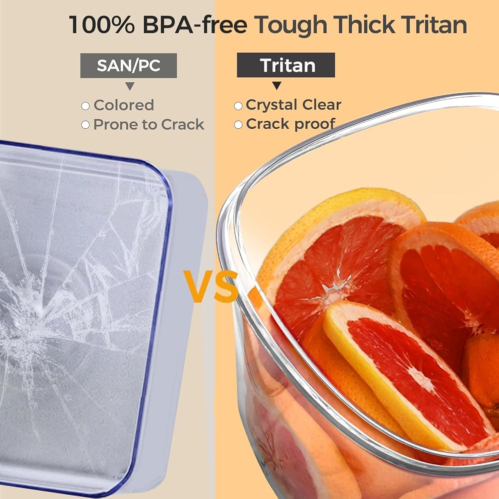 Crack Resistant & BPA Free: Made from durable Tritan, this vacuum container is crystal clear, BPA-free, and shatter-resistant, far surpassing flimsy SAN or PC plastics in durability and safety. No need to worry about acidic foods or accidental drops from up to 6.8ft. The stain and odor-resistant material also keeps the container looking new.