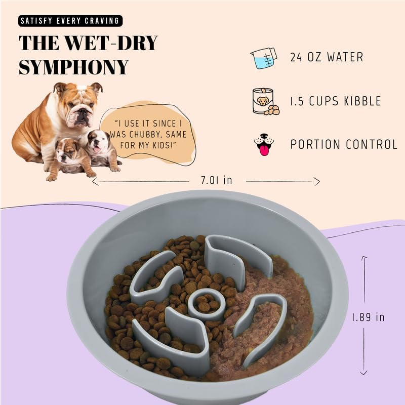 HEALTHIER MEALS: This 1.5 cups slow feeder dog bowl helps your dog enjoy their meals at a safer pace, reducing the risk of gulping down food too fast. Perfect for both dry and wet food
