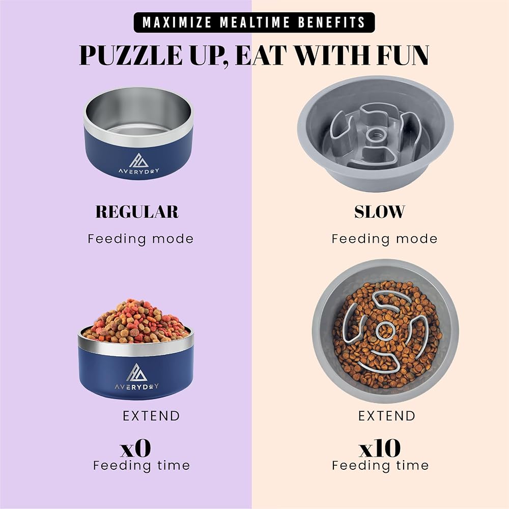 TEN MORE MINUTES: AVERYDAY dog food bowl slow feeder reduce the risk of bloating and indigestion by slowing down their eating speed