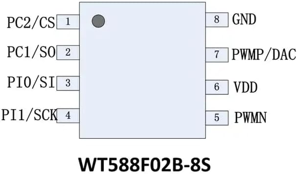 WT588F02B,Recordable Voice Sound Chip,16 bit DAC Output Voice Sound IC,170s 8 Pin Music Chip,can Support 170s of Voice Storage When The Sound Quality is relatively high 10PCS