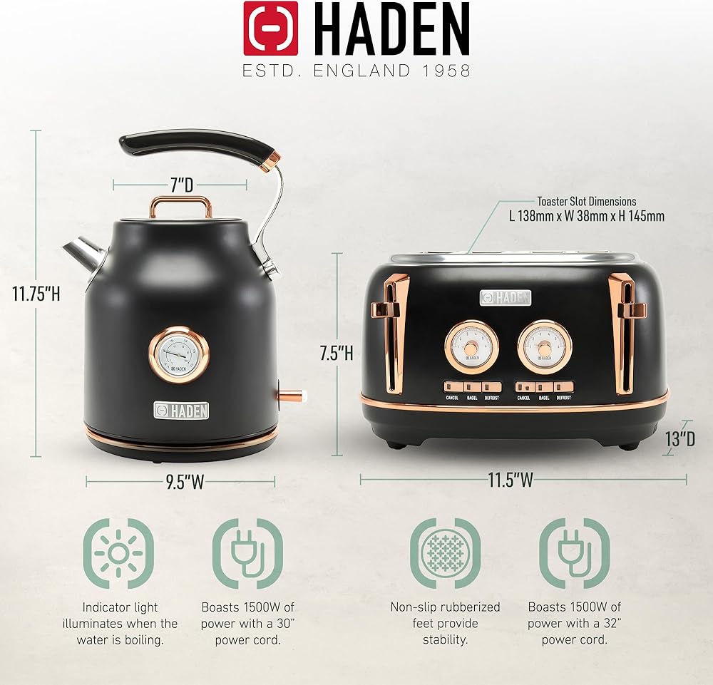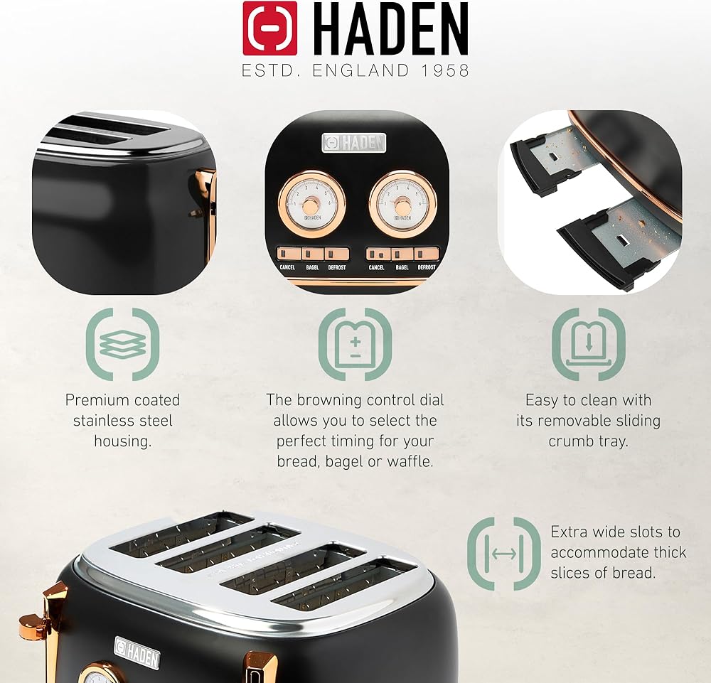 Trusted Since 1958: Offering quintessential British designs, Haden creates elegant home appliances with innovative technology and is trusted by customers as the Go-to British Breakfast Brand. Taking inspiration from British homes, architecture, and landscapes, Haden embodies a perfect balance between form and function.