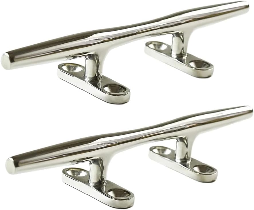 Marine City 316 Grade Stainless Steel Heavy Duty Open Base Cleat Marine Hollow Base Deck Mooring Rope Tie Cleat for Marines – Boats – Yachts (2 Pcs, 6 Inches)