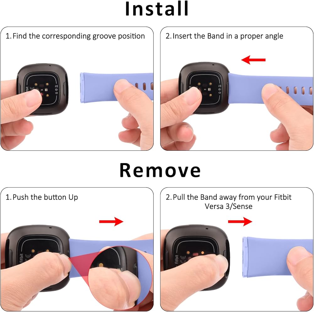 【Easy to Install and Remove】: These sense bands are with Push Button Design same as original band makes it easy to install & remove. Just gently push the band to put on and press the button to remove. No pins required. The bands will lock onto your fitbit versa 3/4 & sense/sense 2 precisely and securely.