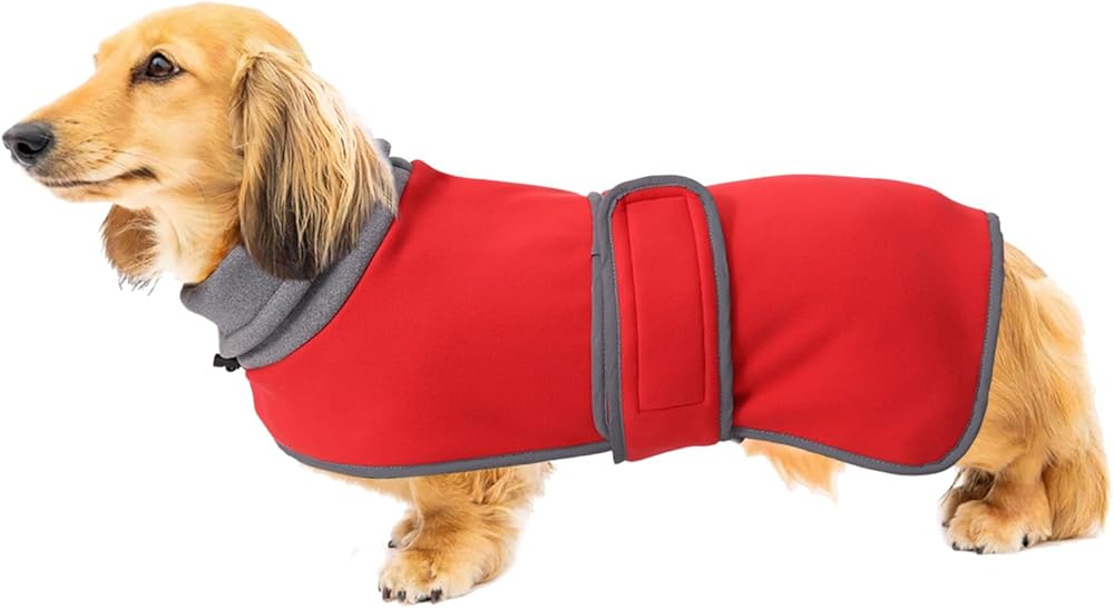 Shower Dachshund is available in different sizes and designed to fit the majority short legged breeds. This dog coat is also available in a model for standard breeds and also a special model for hound like breeds such as Greyhounds, Whippets & Lurchers.