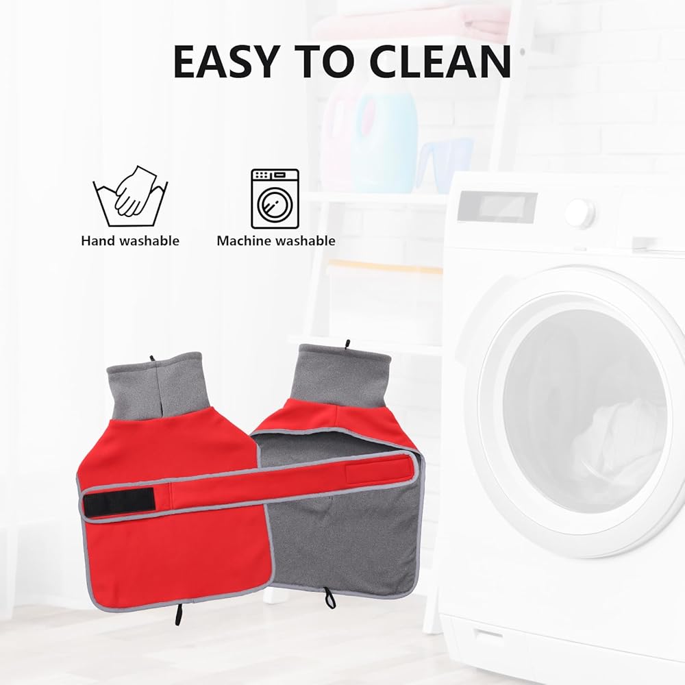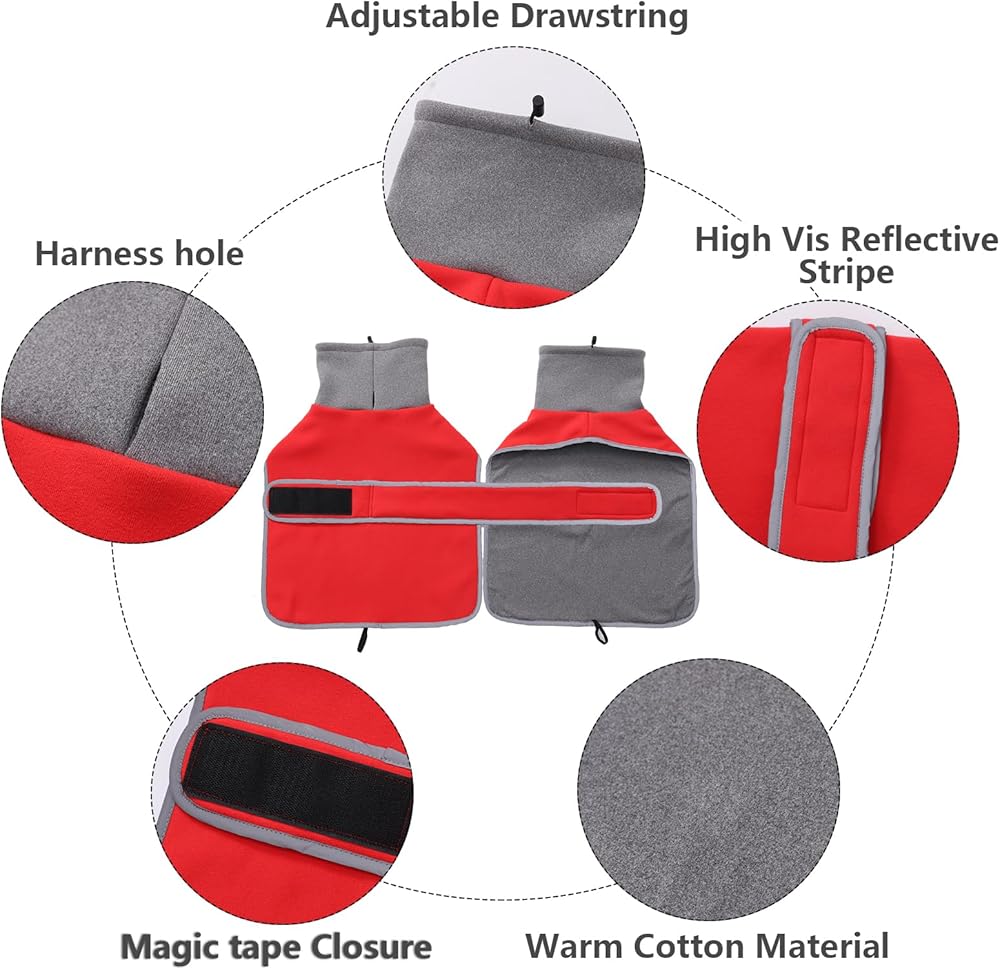 Made from a tough outer fabric which is waterproof, windproof, breathable and washable. The coat is lined with warm fleecy fur and features adjustable front and body straps, together with reflective piping.