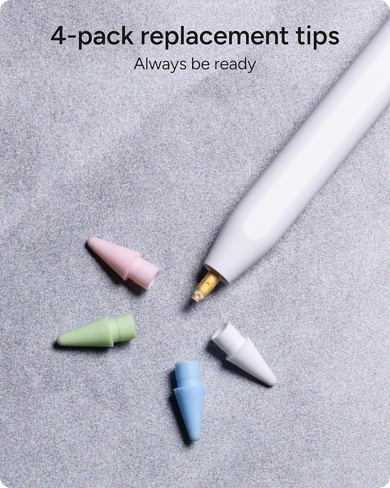 Crafted to provide a natural, paper-like touch, our replacement tips ensure the perfect level of friction, allowing you to sketch, draw, and write smoothly. These tips deliver the precision required for detailed illustration and steady note-taking. The Apple Pencil tips are designed to replicate the original performance, so you don't lose any sensitivity or control while replacing your worn-out nibs. Whether you're a professional artist, student, or creative enthusiast, these tips will keep your Apple Pencil at its peak performance.