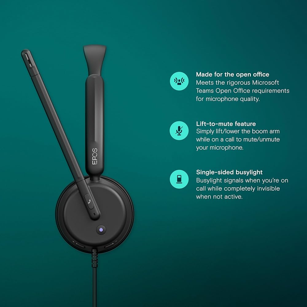 EPOS Impact 460T Binaural On-Ear USB C and USB A Wired Headset with Dual Noise-Canceling Mics, Microsoft Teams Certified, Plug-and-Play, Ideal for Office, Remote Work, Zoom & Business Calls