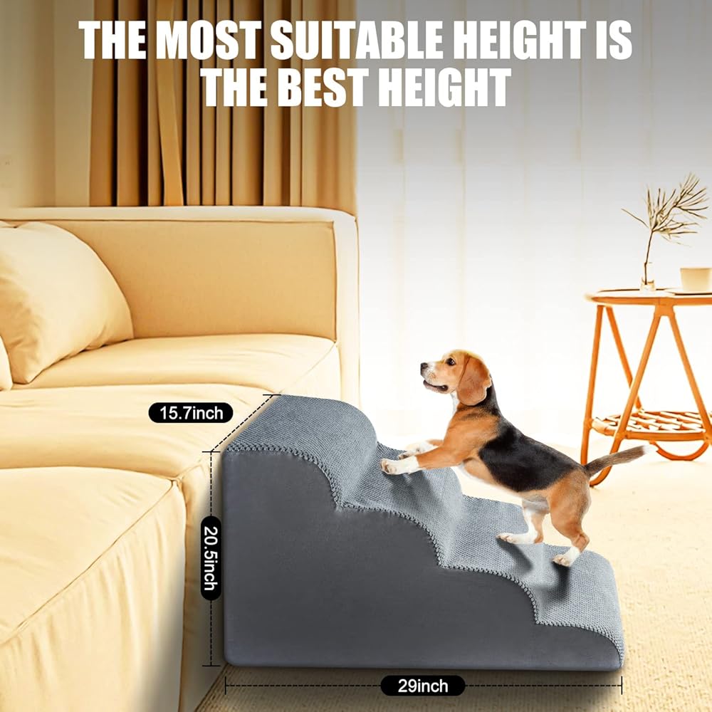 The best size:Looking for the perfect pet stairs for small dogs? Look no further than our four-step option, designed with your furry friend's comfort in mind. With a height of 20.5 inches, these stairs are the ideal fit for most beds and sofas, while a length of 29 inches ensures that your pet can walk up and down the slope with ease. Give your furry friend the gift of comfort and convenience with our pet stairs for small dogs!