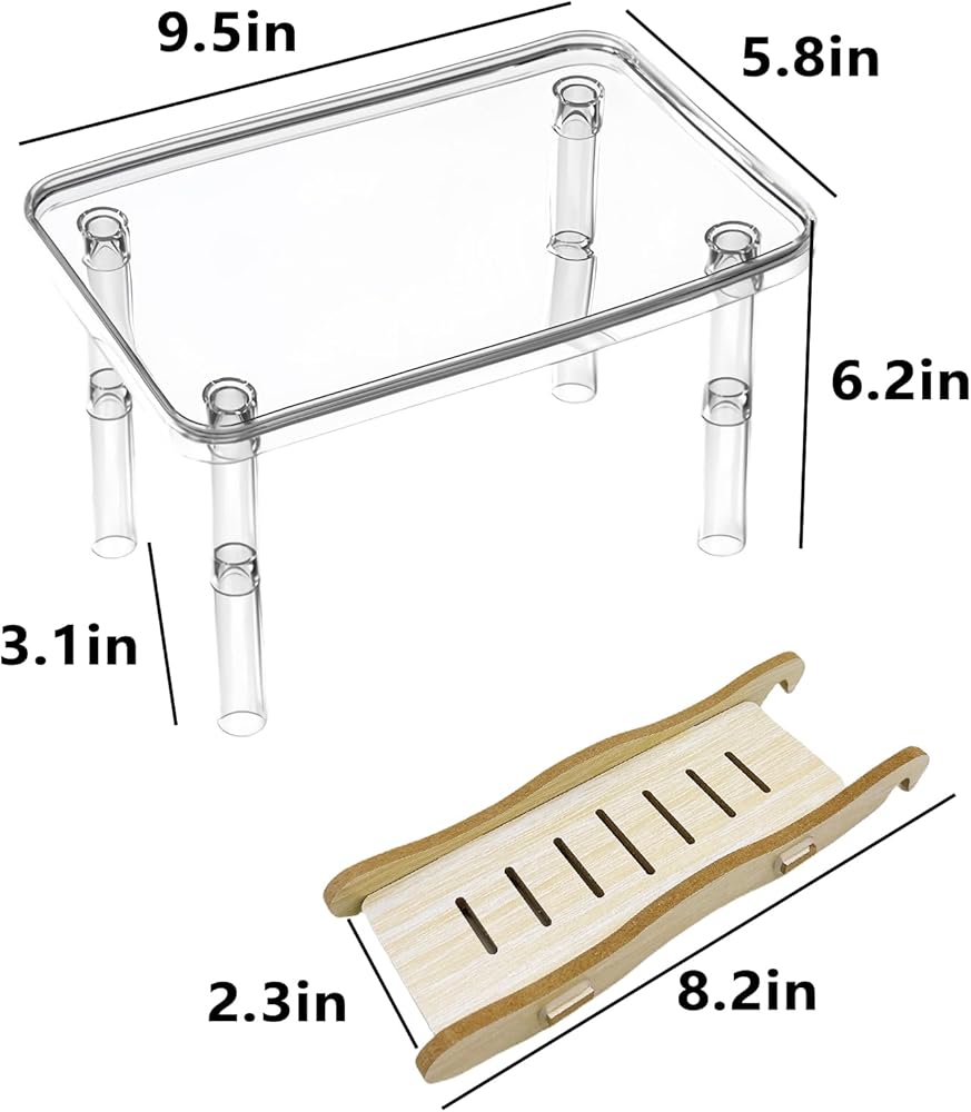 Easy To Install & Clean- You just need to insert the stand legs to install it.the embedded design ensure the hamster standing platform more sturdier and resistant. The acrylic platform can be washed directly with water or wipe it with a paper towel to remove waste. With it, you don't have to worry about cleaning anymore.