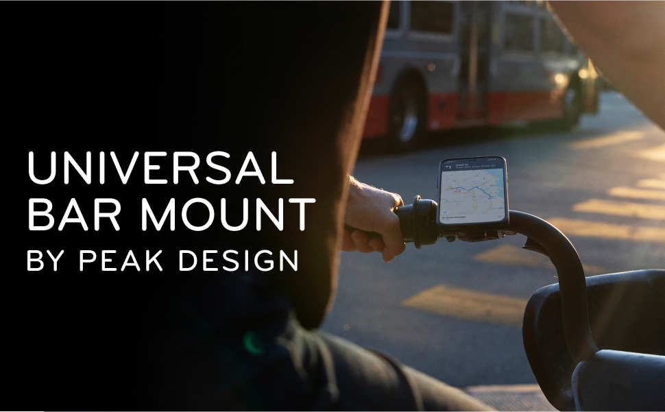 Peak Design Mobile Universal Bar Mount, Silicone Strap Phone Mount, SlimLink Magnetic and Mechanical Lock, Compatible Cases, Phone Holder for Bike, Scooter, Stroller, Golf Cart & More