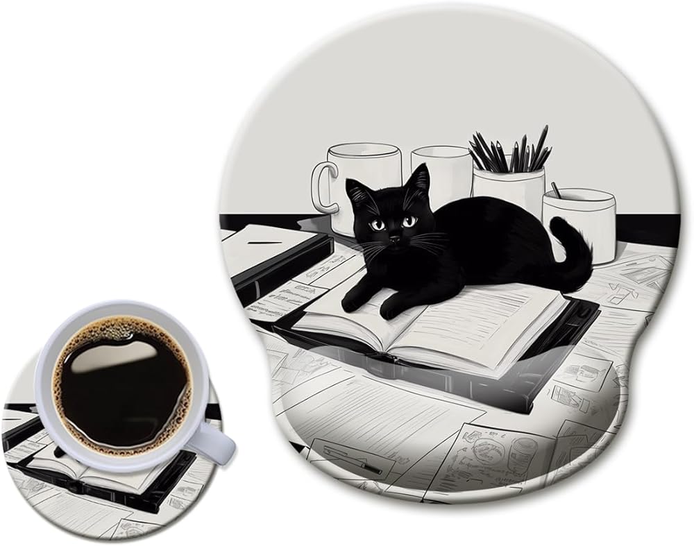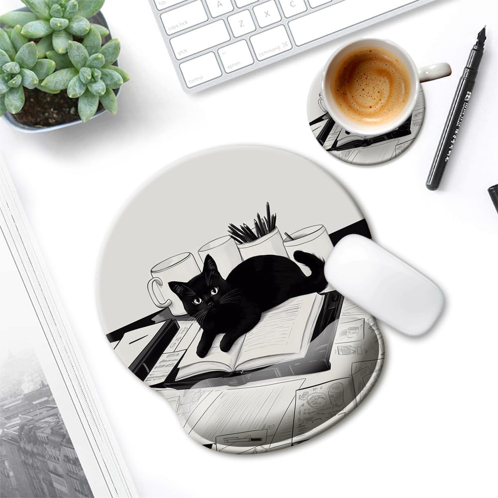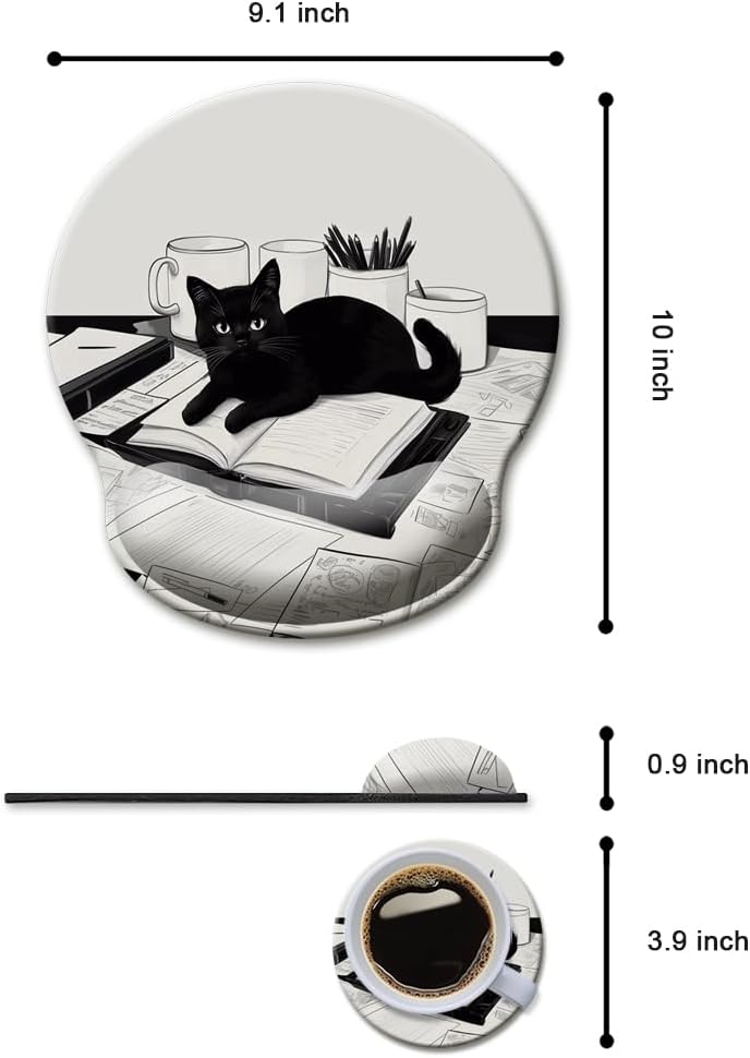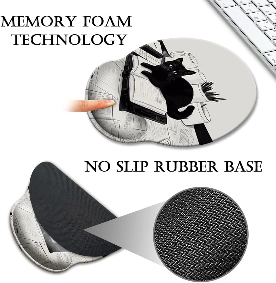 HOPONY Mouse Pad with Wrist Rest,Ergonomic Mouse Pads Wrist Support for Desk,Large Mousepad for Wireless Mouse Gaming Laptop Work Home Desk Accessories Office Supplies Decor,9 x 10 in,Black Cat