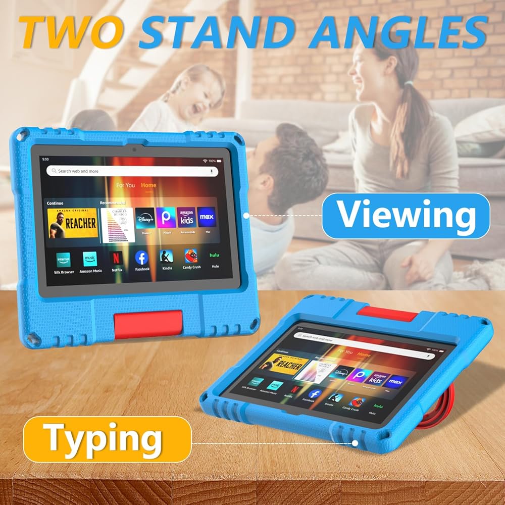 Fire HD 8 Tablet Case for Kids(12th/10th Generation, 2024/2022/2020 Release), Lainergie Lightweight Shockproof Kid-Proof Cover with Convertible Handle Stand Incompatible with Other Older Versions,Blue