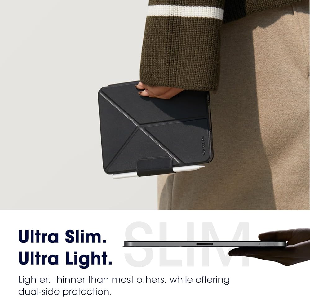[Magnetic Design & Built-in Pencil Holder] The Powerful magnets hold your tablet firmly. Use the magnetic clasp to secure your Apple Pencil. Or fold and hide it when not used. You may attach and charge your Apple Pencil 2 as usual