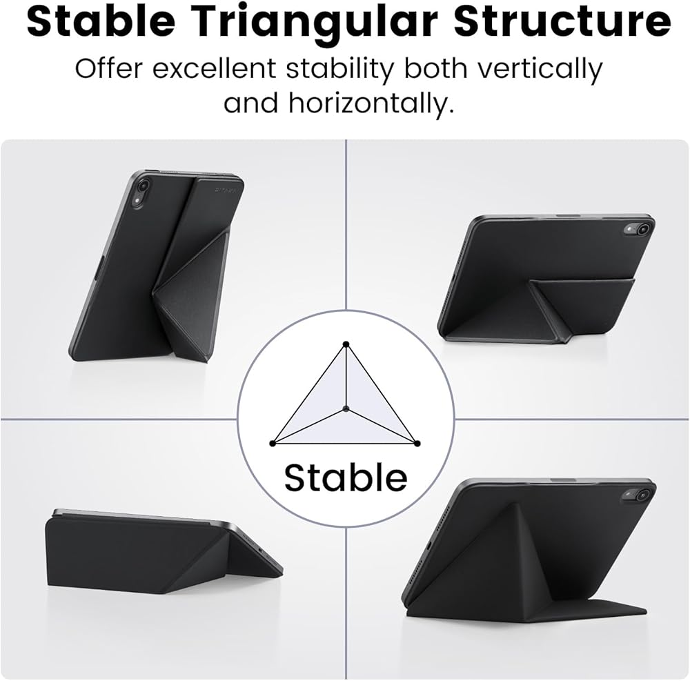 [4 Standing Angles] This iPad mini 7 case / iPad mini 6 case can be folded in two ways, providing four different standing angles for taking Zoom calls, web browsing, drawing, etc. The triangle structure of the multi-fold folio ensures a stable standing position, whether in portrait or landscape